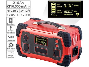• Integrated Li-Ion battery with 216,000 mAh (800 Wh), charges via 12 V and 230